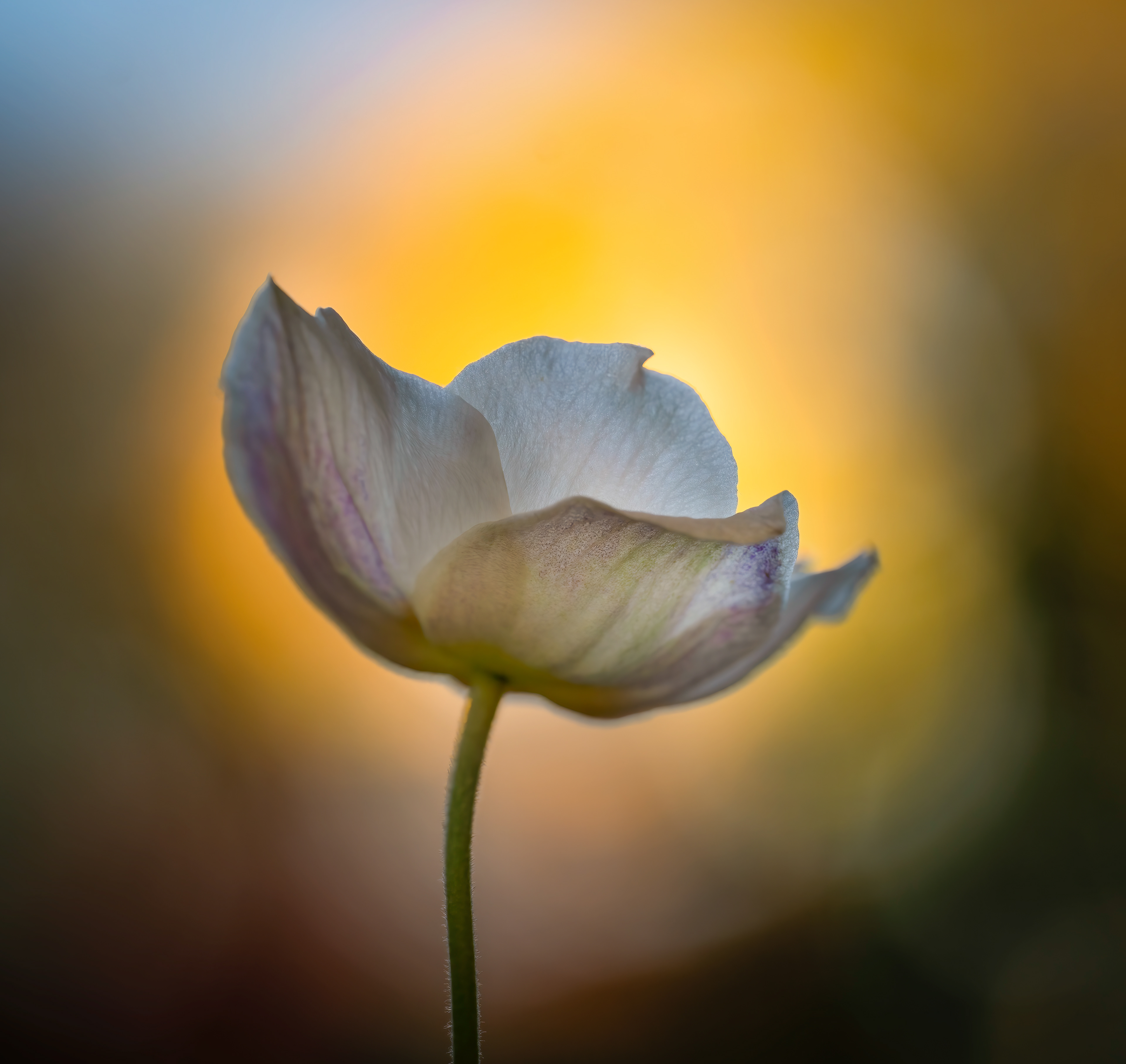 Blue anemone in evening light